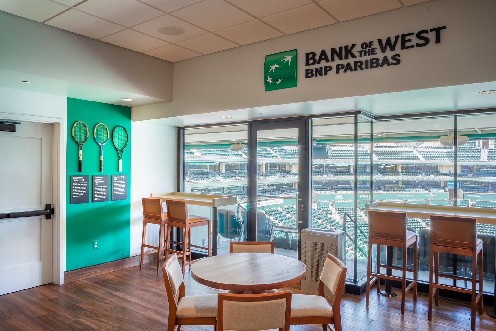 Global banking institution BNP Paribas sponsors the annual BNP Paribas Open in Palm Springs to build brand awareness, highlight their support of tennis, and entertain key customers. In 2019, they decided to update branding in four suites and two outdoor tents. To create temporary tent graphics and permanent suite graphics, they turned to Vomela’s Jersey City facility.