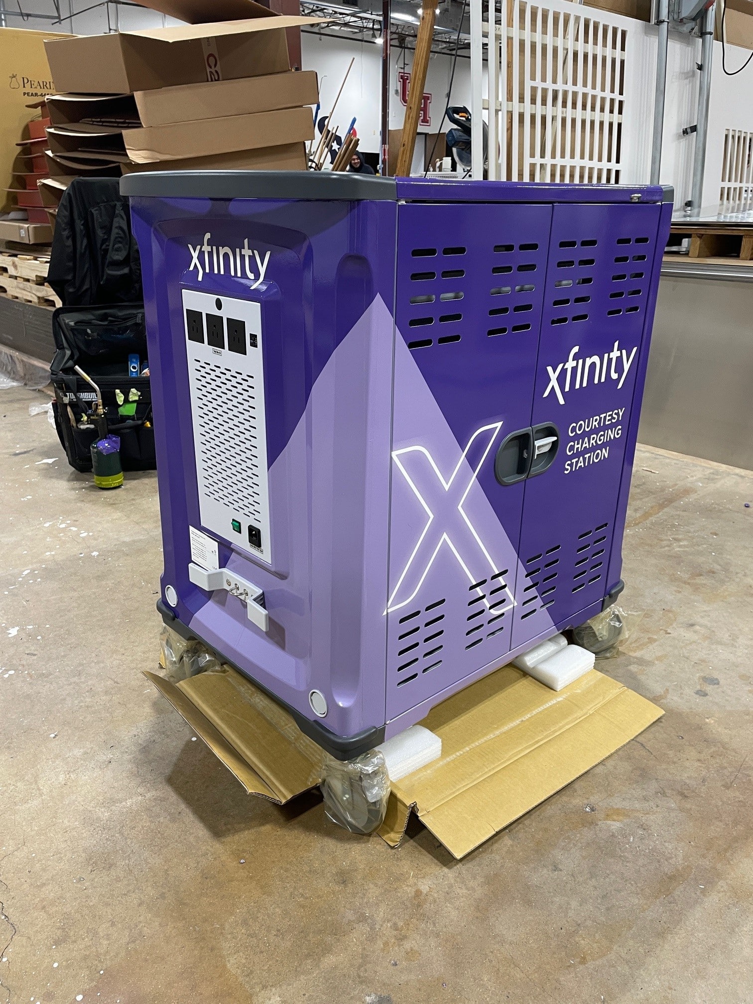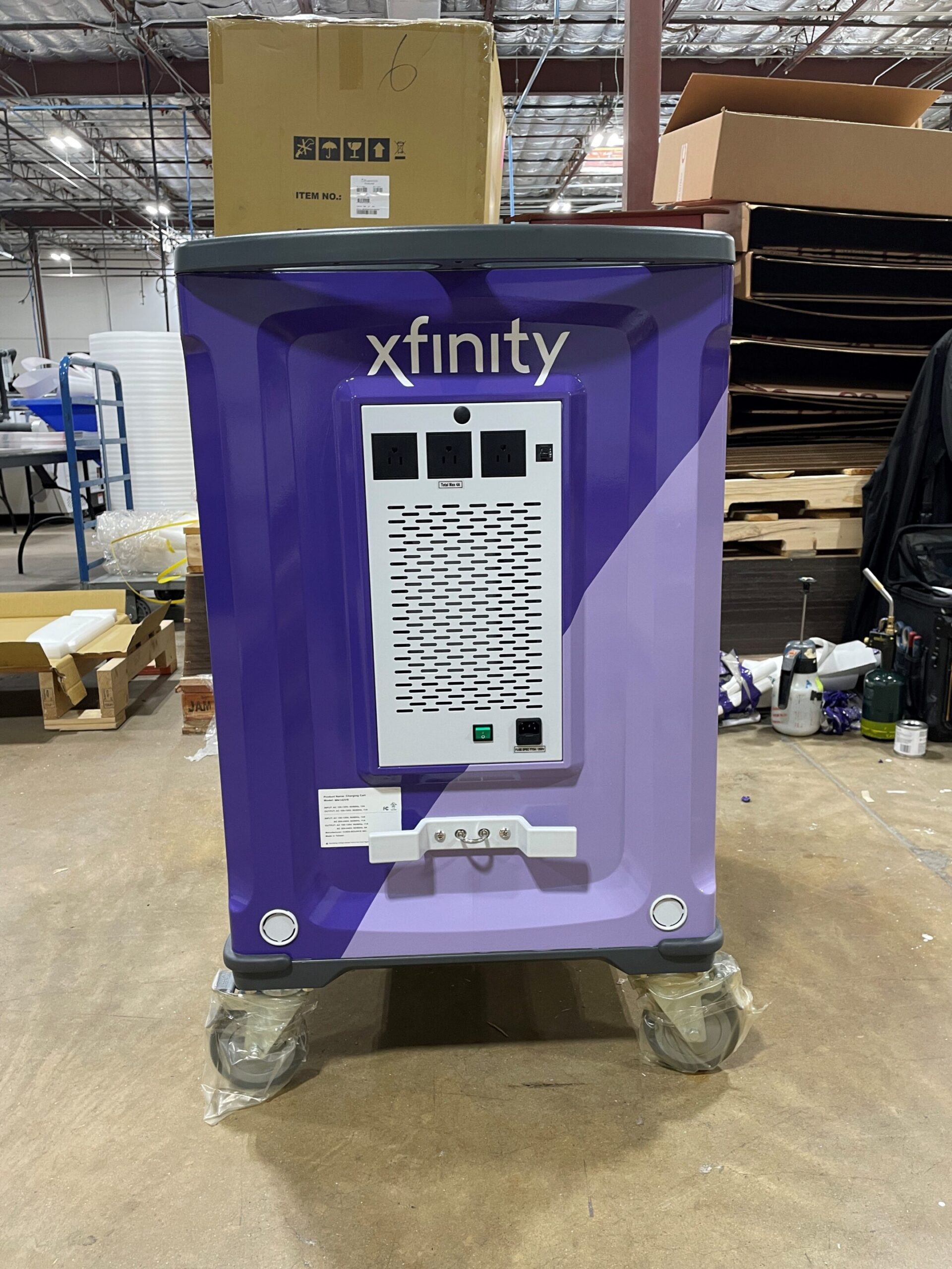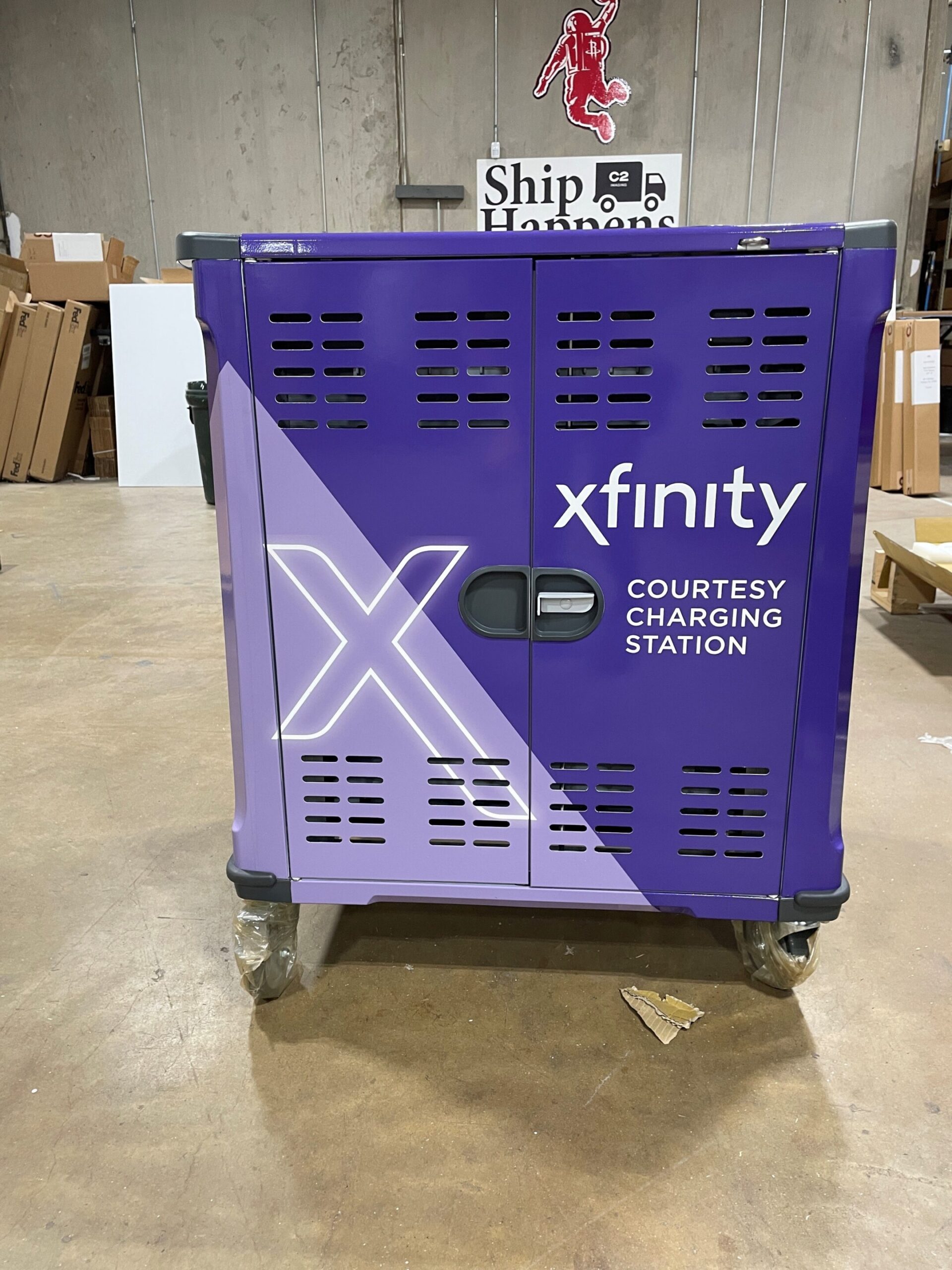 The client received two charging carts and 15 pedestal charging stations which were delivered via courier or shipped to each of their facilities. Comcast/Xfinity was happy with the finished product and we’re proud to support a great project that helps communities nationwide get needed internet access.