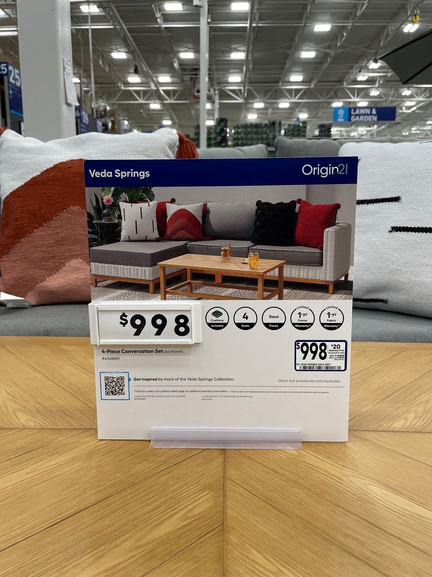 The leading retailer in home improvement products, Lowe’s, was looking for a way to update pricing signage for their patio furniture throughout the season. With multiple sales and changes in demand, the pricing can change quickly and be different depending on store location.