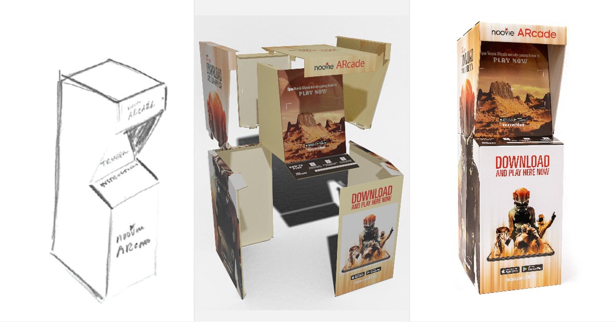 3 D Cardboard Arcade Machine Custom Designed and Printed for Augmented Reality Experience